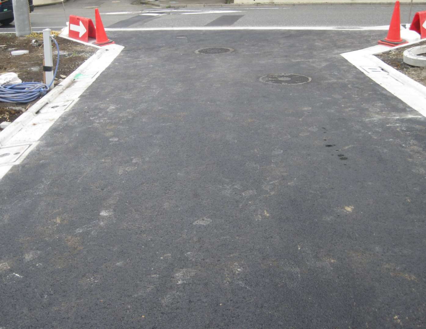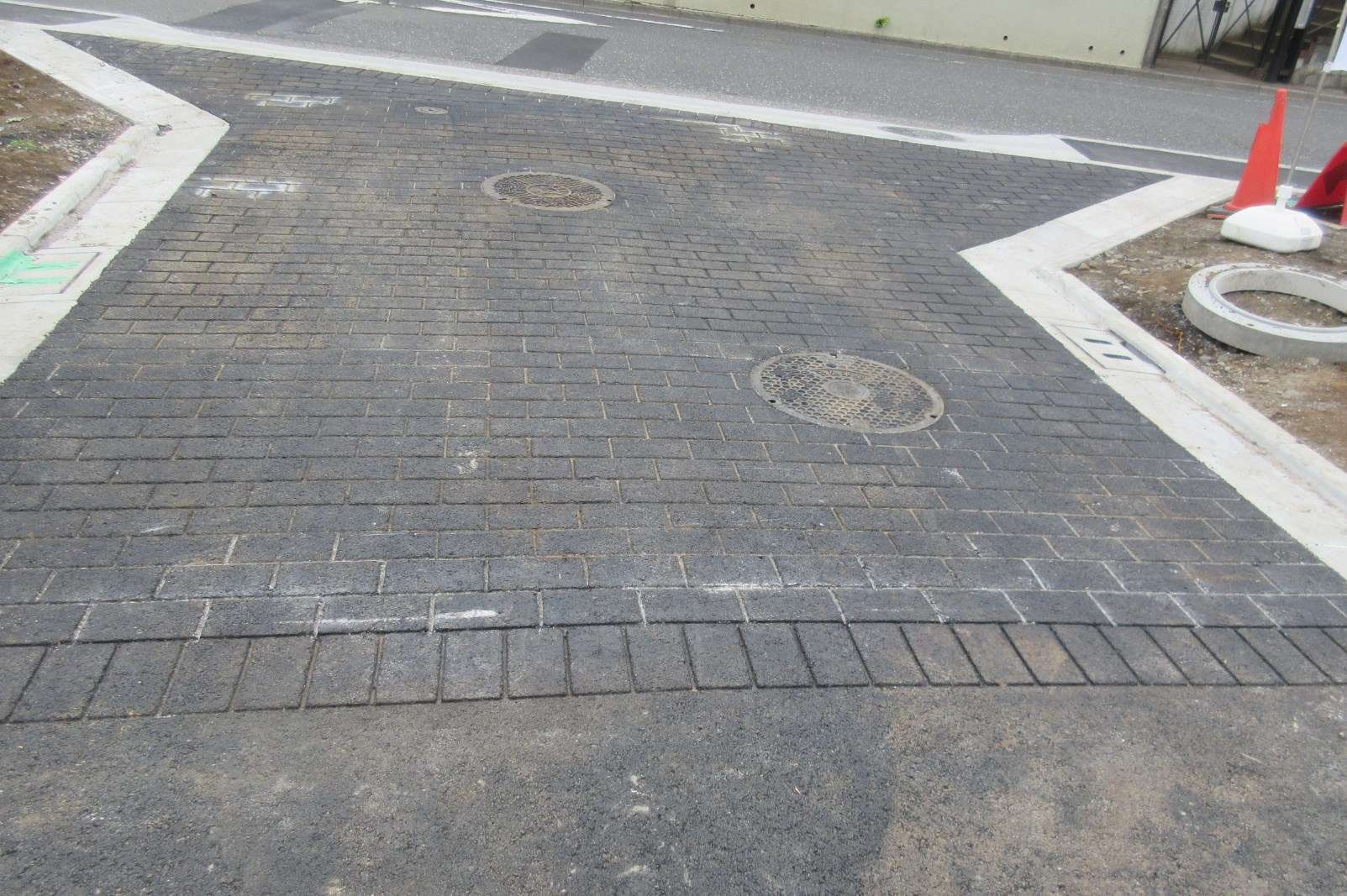 東京都小平市の住宅地引きこみ道路にストリートプリント型押し・着色工事を行いました。