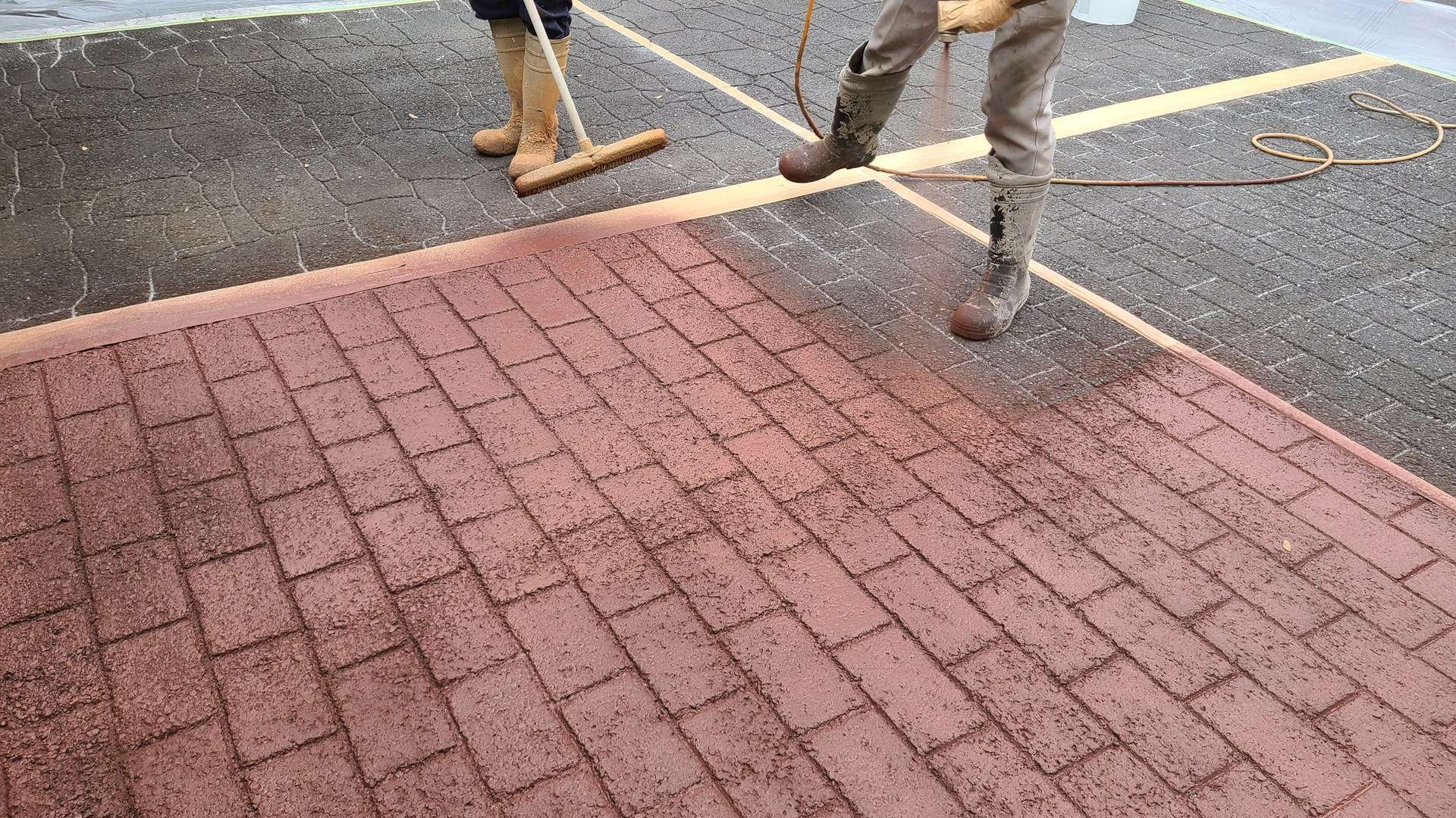 東京都青梅市の店舗駐車場にストリートプリント型押し・着色工事を行いました。